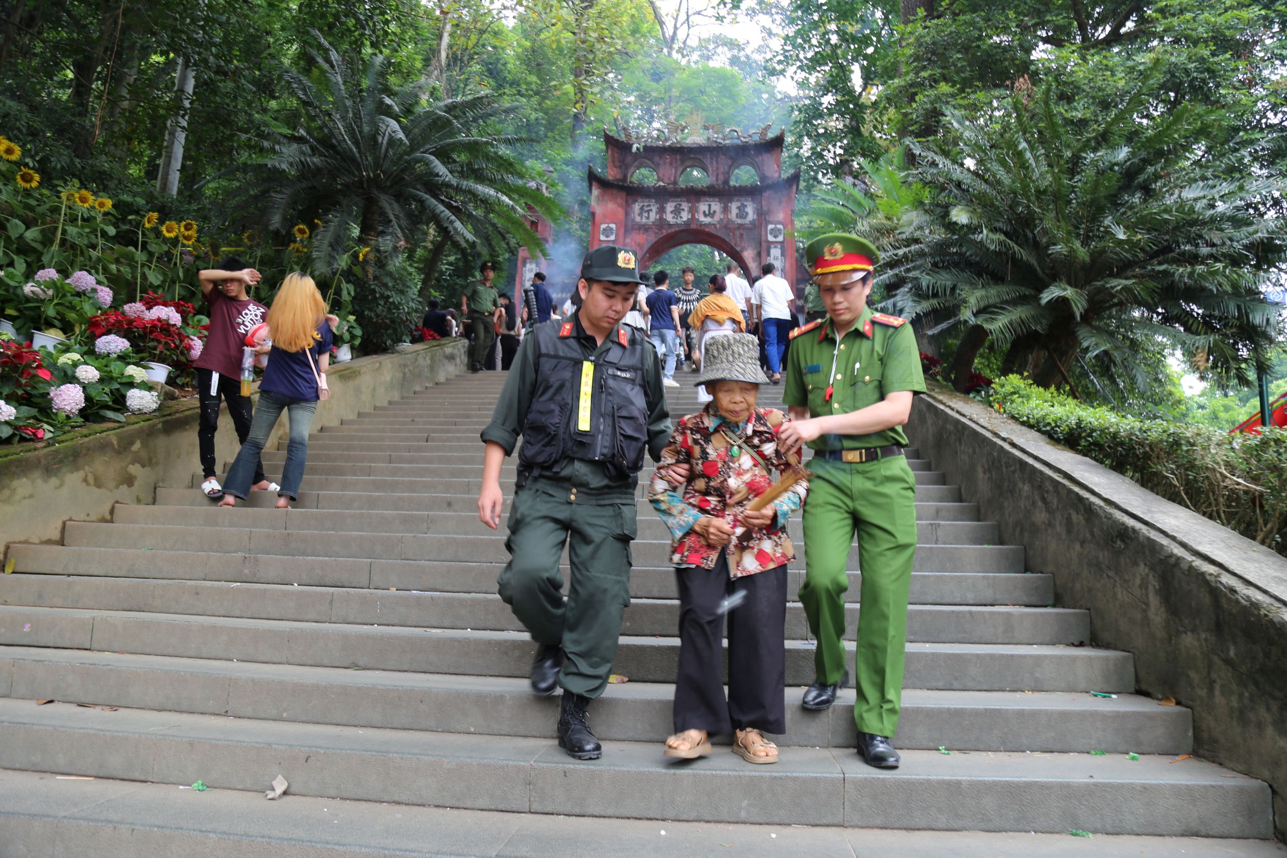Không chỉ đảm bảo công tác ANTT, các anh còn giúp đỡ, hỗ trợ người dân vào những thời điểm họ cần giúp đỡ nhất. Thiếu tá Đỗ Mạnh Hùng, Đội phó Đội Cảnh sát bảo vệ mục tiêu, Phòng Cảnh sát cơ động, Công an tỉnh Phú Thọ kể lại: “Ngày 25/4 (mùng 9/3 âm lịch), có một học sinh nữ lớp 12 sau khi leo các bậc thang để lên dâng hương thì bất ngờ tụt huyết áp bị ngất. Lúc đó, tôi đang làm nhiệm vụ thì được bên y tế thông báo làm sao phải đưa cô bé xuống khu vực phía dưới để cấp cứu. Nhanh chóng, tôi cõng nạn nhân xuống. Để đi nhanh, một đồng chí trong tổ trực chốt đi trước dẹp đường để xuống khu vực Công Quán”. Khi đó, Thiếu tá Đỗ Mạnh Hùng đã phi nhanh hơn 100 bậc tam cấp, mồ hôi nhễ nhại quên mệt mỏi để đưa em học sinh xuống phía dưới đưa đi bệnh viện cấp cứu kịp thời.