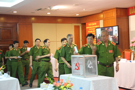 | Các đảng viên bỏ phiếu bầu BCH Đảng bộ Cục Cảnh sát truy nã tội phạm, nhiệm kỳ 2015-2020. |
