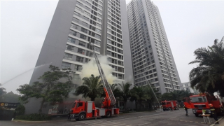 Diễn tập phương án chữa cháy, cứu nạn cứu hộ ở chung cư cao cấp