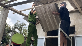Công an xã ở Thừa Thiên Huế khẩn trương giúp người dân lợp lại mái nhà