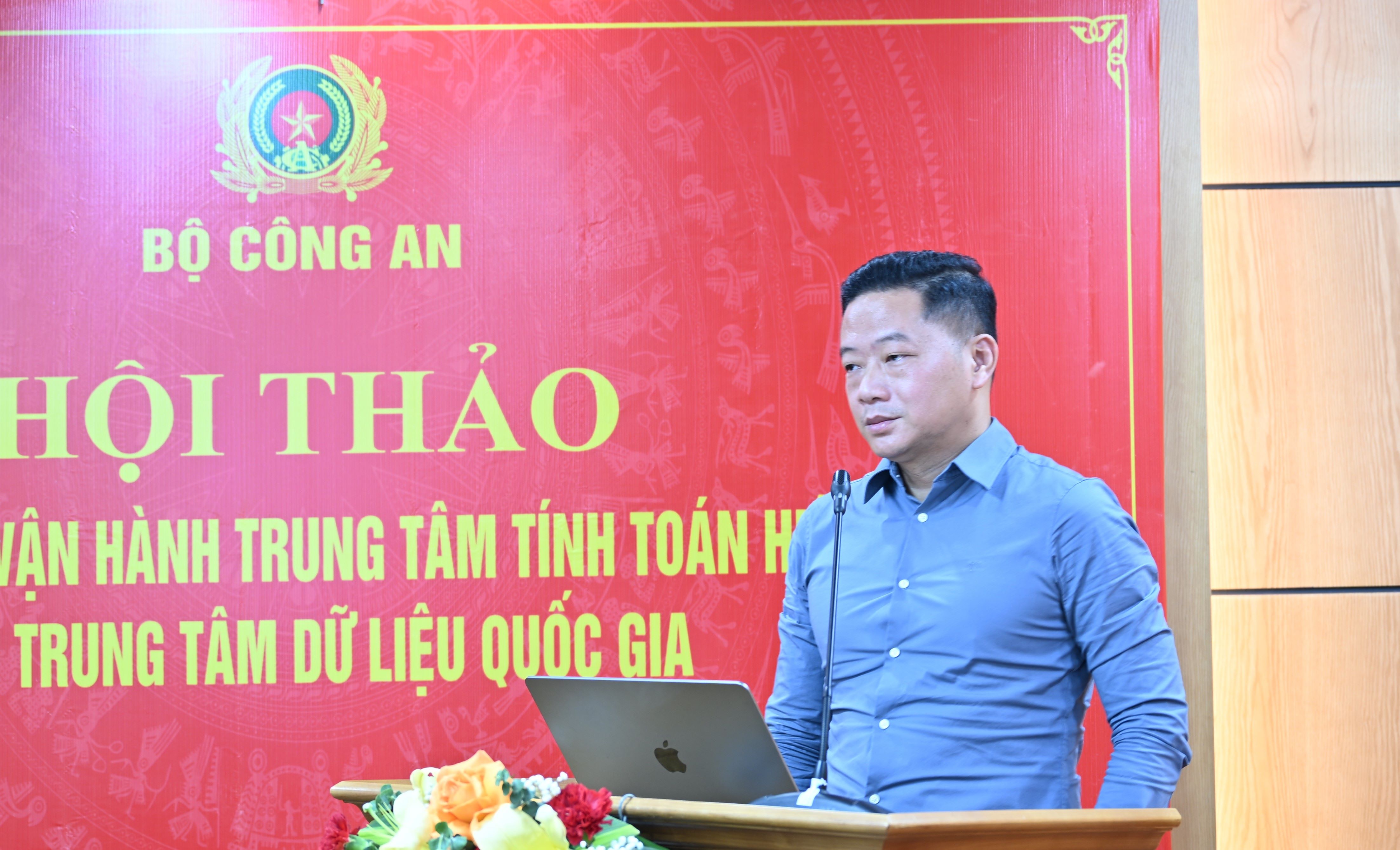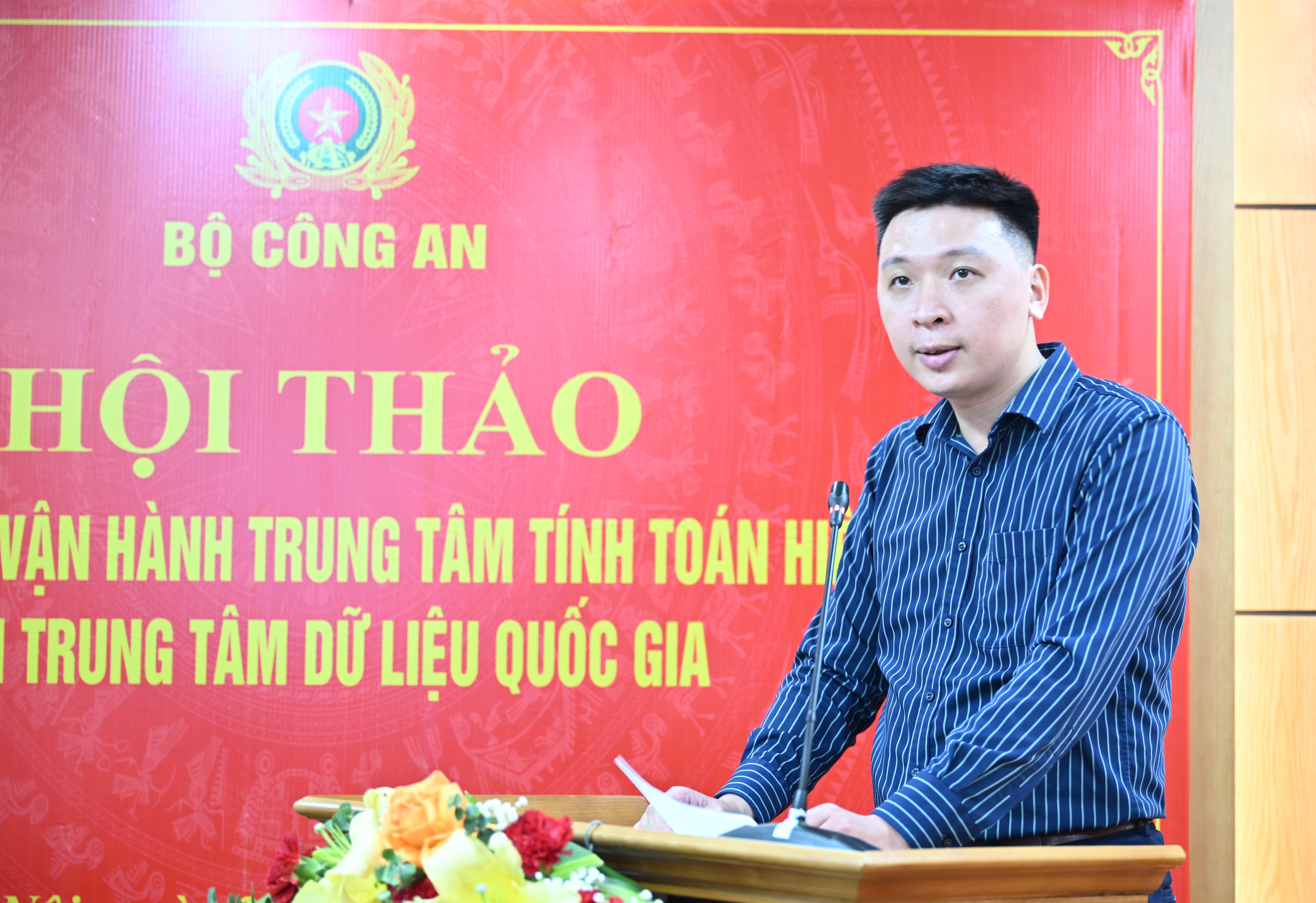 Đại tá Phạm Minh Tiến, Phó Giám đốc Trung tâm Dữ liệu quốc gia trình bày báo cáo đề dẫn hội thảo nêu rõ, việc nghiên cứu, xây dựng Trung tâm tính toán hiệu năng cao tại Trung tâm Dữ liệu quốc gia không chỉ nhằm đáp ứng nhu cầu xử lý, phân tích dữ liệu quy mô lớn của các cơ quan Nhà nước, mà còn hướng tới hình thành hạ tầng tính toán hiện đại phục vụ công tác chỉ đạo, điều hành, phân tích, dự báo chiến lược và hỗ trợ hoạch định chính sách.