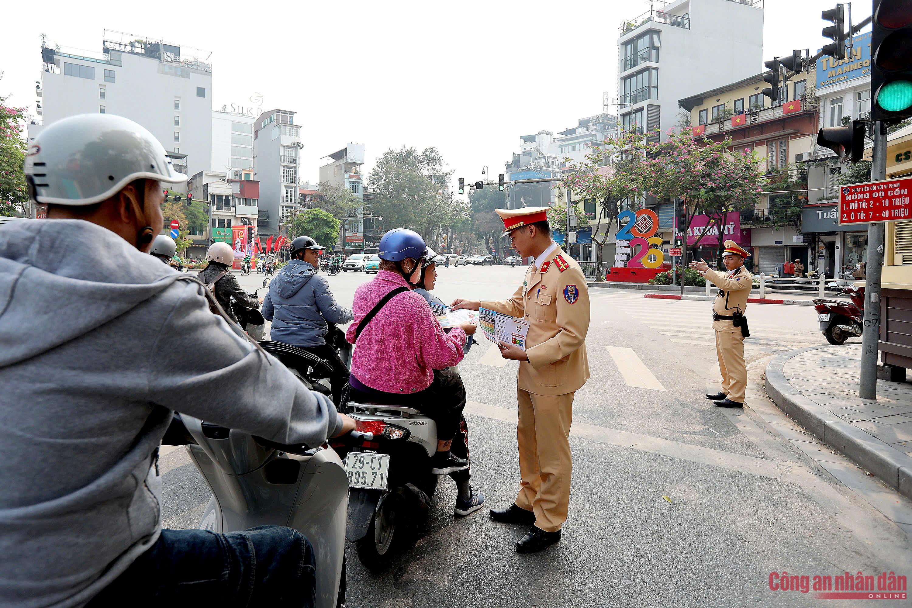 Ghi nhận của PV Báo CAND vào ngày 6/3 tại tuyến Tràng Tiền - Hàng Khay - Tràng Thi, đoàn viên thanh niên Đội CSGT số 1 (Phòng CSGT Công an TP Hà Nội) phối hợp cùng Công an phường Hoàn Kiếm tổ chức tuần tra, tuyên truyền, nhắc nhở người dân chấp hành các quy định về trật tự an toàn giao thông TTATGT và TTĐT.