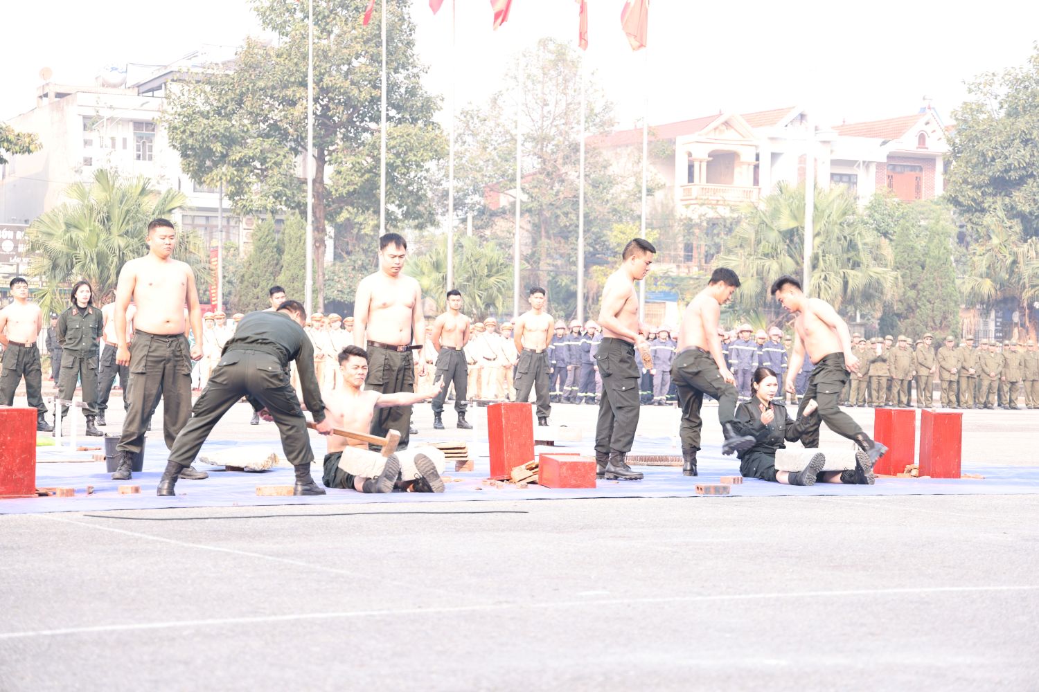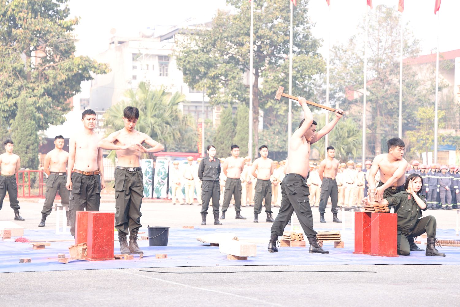 Tại buổi lễ, các đại biểu đã được xem diễn tập phương án xử lý tình huống đánh bắt tội phạm nguy hiểm trên sông do lực lượng Cảnh sát đặc nhiệm thực hiện trên màn hình LED và tình huống thực tế phần biểu diễn, võ thuật CAND do lực lượng Cảnh sát đặc nhiệm và Cảnh sát cơ động thực hiện: