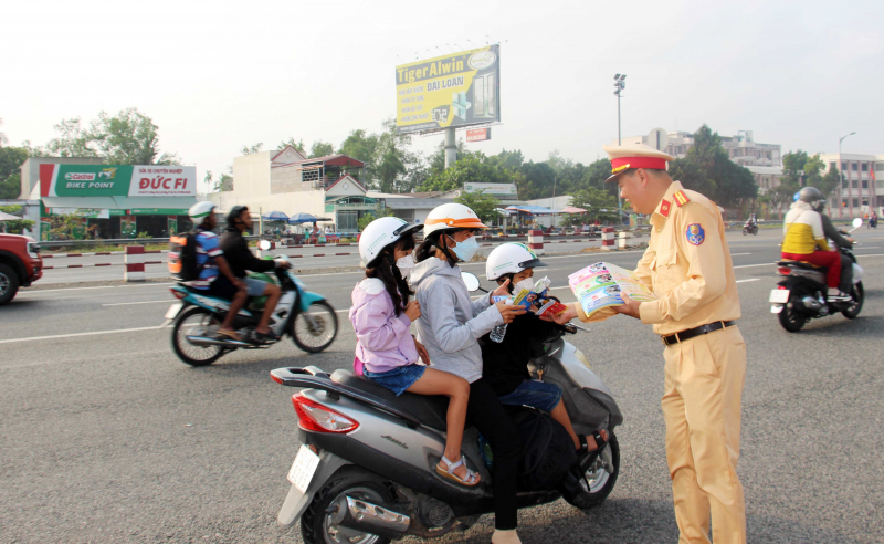 Cần Thơ: Tại Trạm CSGT phía trước chân cầu Cần Thơ, CBCS Phòng CSGT Công an TP Cần Thơ phối hợp với các đơn vị liên quan tổ chức phát nước suối, khăn lạnh, nón bảo hiểm tặng người dân trên đường về quê ăn Tết. Cùng với đó, CBCS còn phát tờ rơi tuyên truyền các quy định TTATGT, nhắc nhở người dân lái xe an toàn.