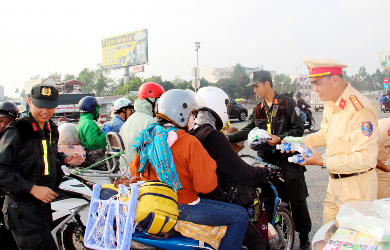 Những ngày qua, người lao động, bà con xa quê về quê miền Tây Nam Bộ đón Tết bằng xe máy dưới cái nắng gắt và khói bụi trên các tuyến đường vất vả. Khi được lực lượng CSGT Công an các tỉnh, thành khu vực miền Tây Nam Bộ phối hợp với các đơn vị liên quan tổ chức phát nước suối, khăn lạnh, khẩu trang, nón bảo hiểm, tiếp thêm nhiên liệu, sửa chữa xe máy bị hư hỏng miễn phí, giúp bà con cảm nhận được sự ấm áp nghĩa tình của quê hương sau bao ngày xa xứ.