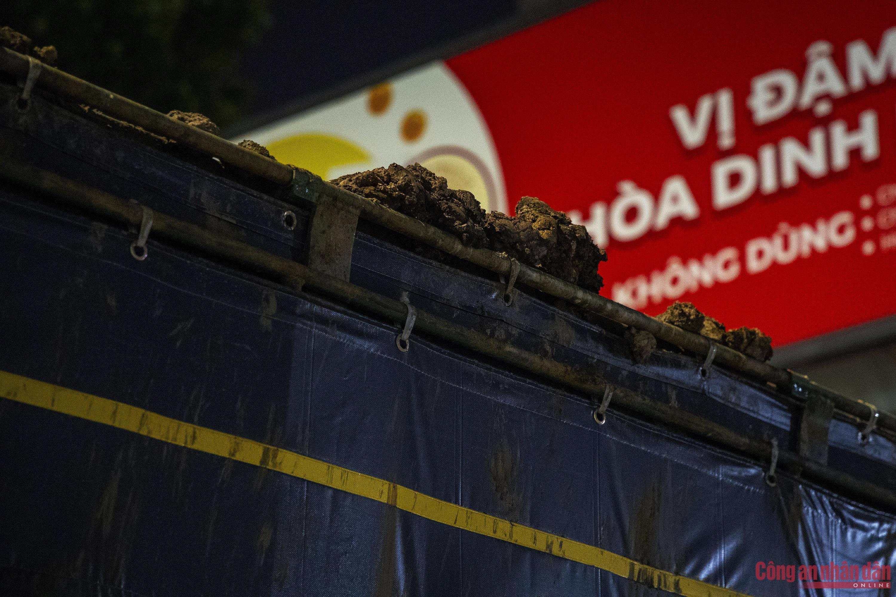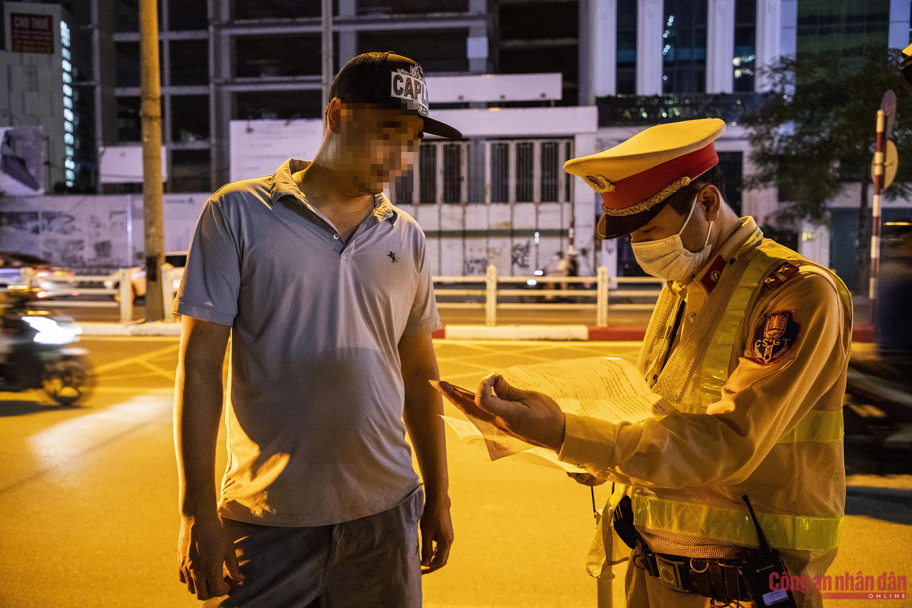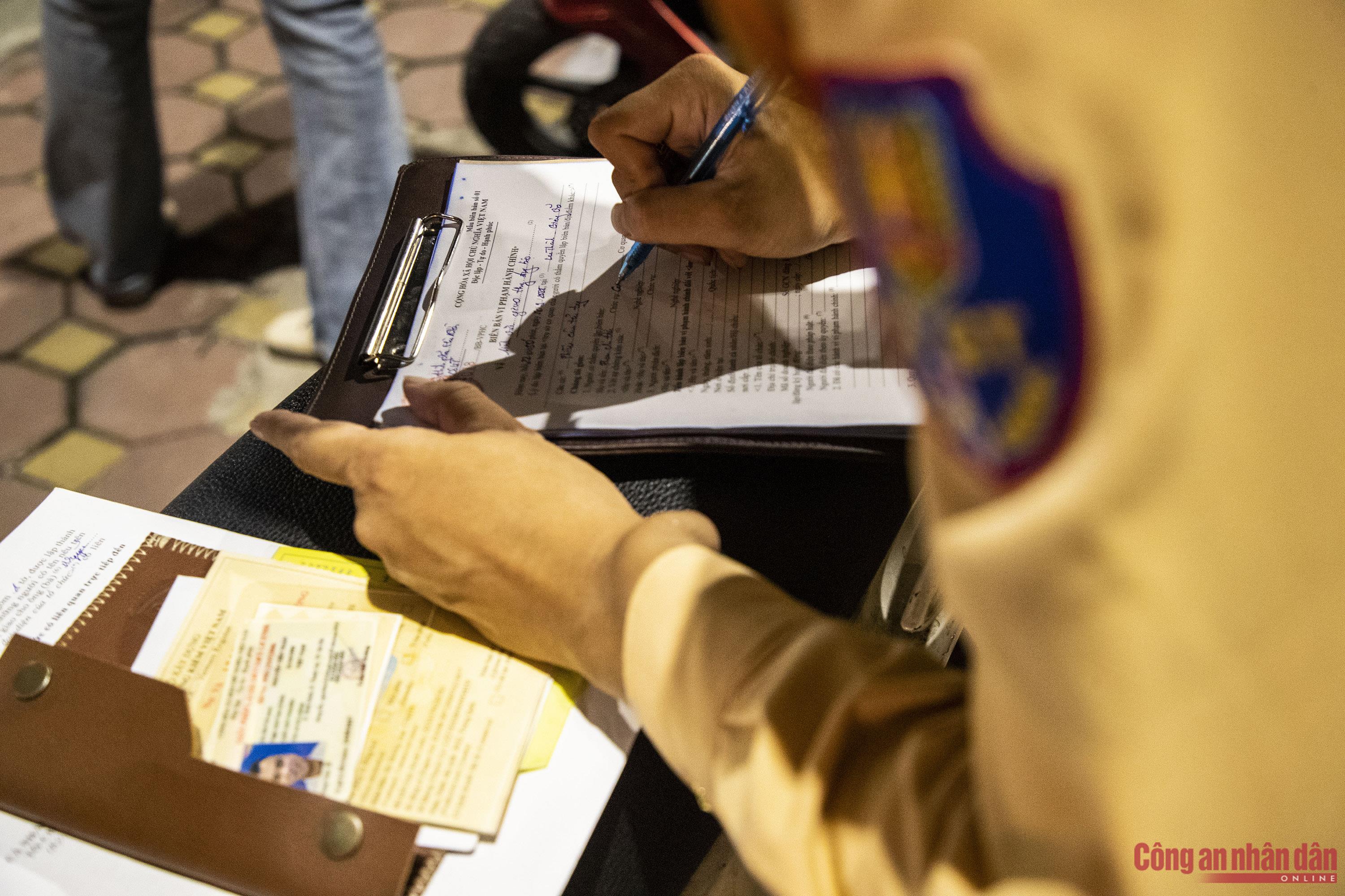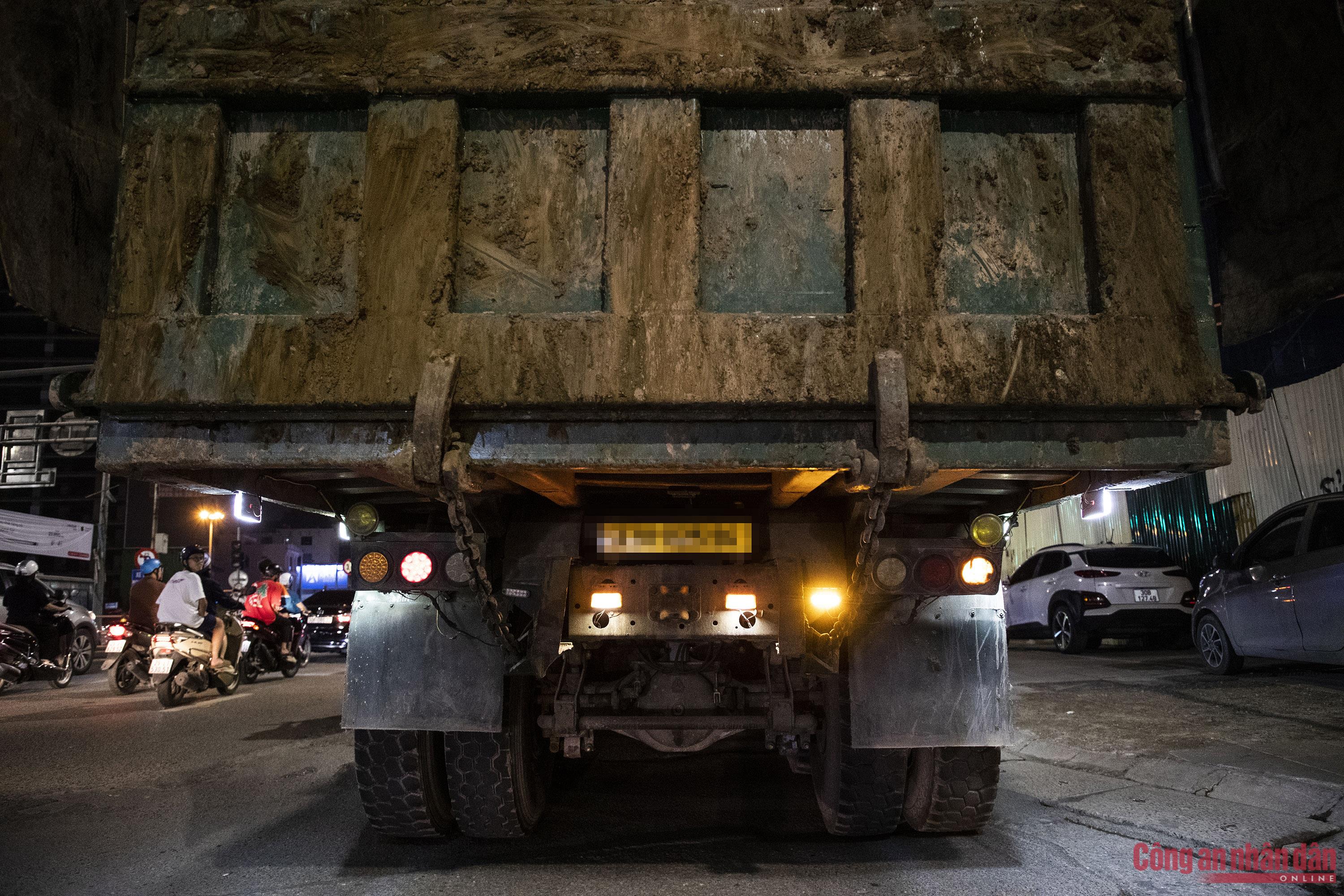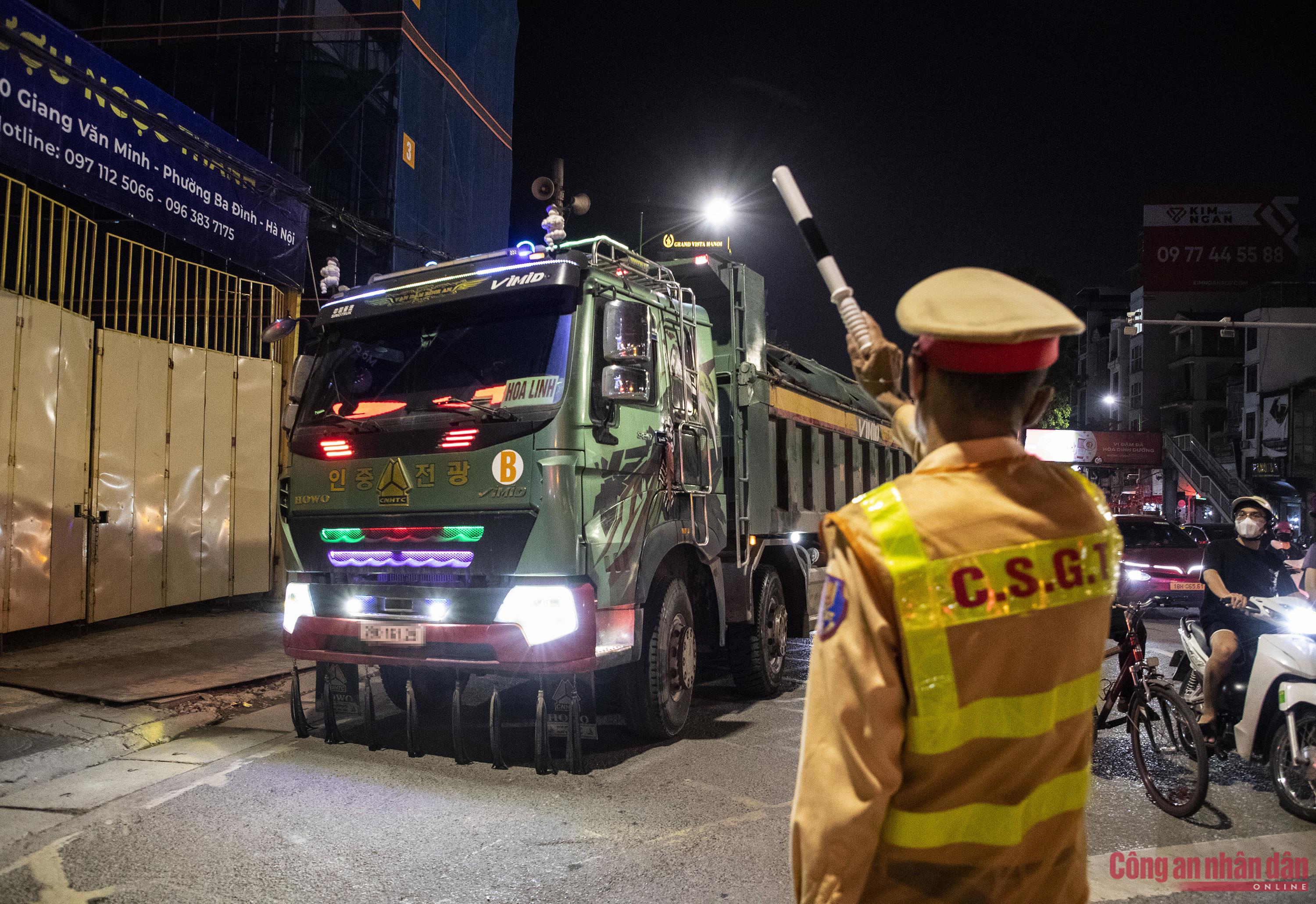 Việc kiểm tra diễn ra đột xuất, không báo trước, khiến các tài xế điều khiển phương tiện vi phạm không có cơ hội né tránh. Hơn 22h đêm, tổ công tác phát hiện ô tô tải BKS 29K-161.XX do tài xế Nguyễn V.T. (SN 1993, trú tại Hà Nội) điều khiển, có dấu hiệu quá tải nên dừng xe để kiểm tra. Qua kiểm tra tải trọng, cảnh sát phát hiện ô tô chở quá tải từ 10 - 30%.Cảnh sát làm việc với một tài xế khác điều khiển xe tải chở vật liệu xây dựng gây rơi vãi ra đường. Lý do mà người này đưa ra do bạt che ở thùng hàng đằng sau ô tô mới bị hỏng nên gây rơi vãi ra đường, sau đêm nay, tài xế sẽ đưa đi sửa chữa ngay.Tài xế xe quá tải tìm cách câu giờ, gọi điện cho "người thân" tìm sự trợ giúp. Tuy nhiên, với thái độ cương quyết, tổ công tác CSGT đã buộc tài xế phải chấp hành làm việc, xuất trình giấy tờ liên quan để kiểm tra, xử lý. Trung tá Nguyễn Khắc Bốn, cán bộ Đội CSGT số 3 cho biết, quá trình xử lý các trường hợp ô tô chở vật liệu xây dựng vi phạm, lực lượng CSGT gặp rất nhiều khó khăn. Do các tài xế biết mức phạt cao nên có tình chây ỳ không xuất trình giấy tờ của người lái và phương tiện hoặc tìm cách báo cho nhau để né tránh.Bằng mắt thường có thể thấy rất rõ phần cát vượt thành, thùng xe. Các loại bạt che chắn cũng chỉ được tài xế che sơ sài, gây rơi vãi vật liệu xuống đường. Phần đất bùn trên thành thùng một xe tải vi phạm.Đến gần 2h sáng 19/9, tổ công tác đã xử lý được gần 10 trường hợp vi phạm.Tổ CSGT đã lập biên bản xử phạt tài xế T. với lỗi: Điều khiển xe chở vượt tải trọng cho phép từ 10% đến 30%; mức phạt từ 800 - 1 triệu đồng. Đồng thời, chủ phương tiện sẽ bị xử phạt với lỗi: Giao xe cho người làm công điều khiển vi phạm chở quá tải từ 10% đến 30%, mức phạt từ 4 - 6 triệu đồng.