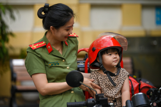 Thiếu nhi Hà Nội thích thú trải nghiệm làm lính cứu hoả