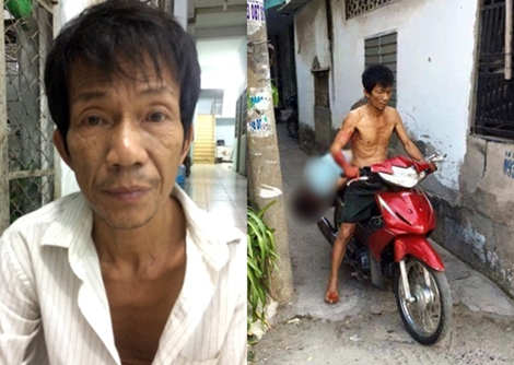 Nghi can Nguyễn Văn Nam tại Công an quận Gò Vấp - Hình ảnh ông Nam chở thi thể con rể đi đầu thú khiến nhiều người kinh hãi. |