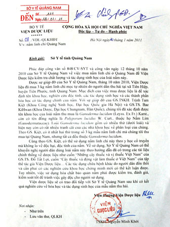 | Công văn của Viện Dược liệu - Bộ Y tế gửi Sở Y tế tỉnh Quảng Nam. |