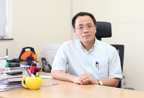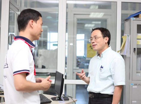 | GS. Tạ Thành Văn trao đổi với cộng sự tại Trung tâm nghiên cứu Gen - Protein (Trường Đại học Y Hà Nội). |