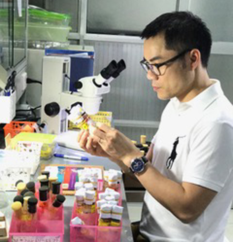 | TS. Nguyễn Trọng Tuệ đang nghiên cứu về ruồi giấm. |