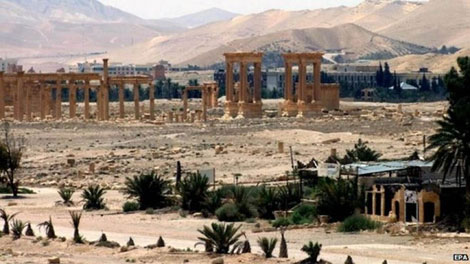 Cảnh đổ nát hoang tàn tại thành phố cổ Palmya. |