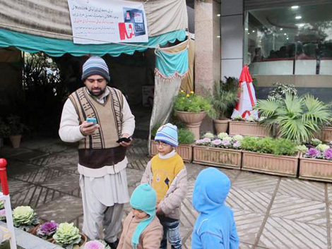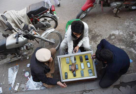 | Một người bán điện thoại di động trên đường phố Rawalpindi, tỉnh Punjab. |