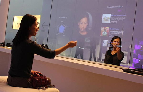 Mới đây, Công ty Panasonic đã giới thiệu sản phẩm công nghệ cao Smart Mirror (2) tại sự kiện IFA 2014, với hệ thống cảm biến tích hợp gương mặt giúp người dùng có được sự lựa chọn tối ưu khi trang điểm.