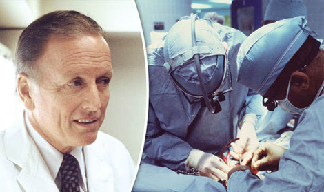 Bác sĩ Denton Cooley trong một ca cấy ghép tim nhân tạo. Ảnh nguồn: Daily Express.
