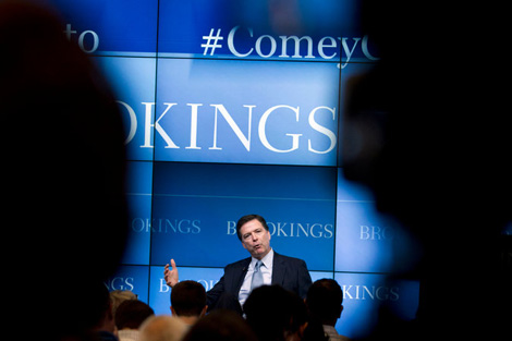 Trả lời câu hỏi từ các phóng viên và chuyên gia Viện Brookings, James Comey nêu rõ ông chỉ tập trung vào lợi ích của FBI mà không hề đại diện cho NSA hay các cơ quan tình báo nào khác. Cựu giám đốc FBI mô tả vài vụ án được truy tố thành công nhờ đọc được tin nhắn văn bản và bằng chứng khác có được từ điện thoại di động, như là vụ kẻ tấn công tình dục đã sát hại một thiếu niên ở bang Louisiana.
