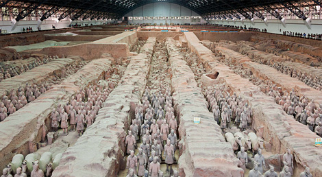 | Tượng chiến binh đất nung tại di tích Binh mã dũng ở tỉnh Thiểm Tây (Trung Quốc), được cho là canh gác khu lăng mộ của Tần Thủy Hoàng. |