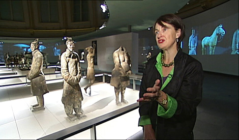 | Bà Jane Portal, người phụ trách triển lãm Đệ nhất hoàng đế (Tần Thủy Hoàng) của Bảo tàng Anh, nơi đã trưng bày di tích Binh mã dũng. |
