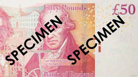 Các “Chòm sao EURion” xuất hiện trên tờ tiền 50 bảng Anh.