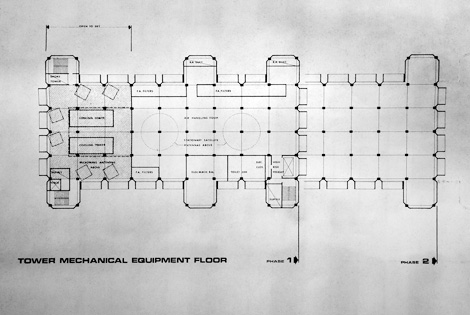 Tòa nhà này cũng là nơi đặt trụ sở của một trong những trung tâm viễn thông quan trọng bậc nhất ở Mỹ - đó là trung tâm lớn nhất thế giới để xử lý những cuộc gọi điện thoại đường dài được vận hành bởi Công ty Điện thoại New York, một công ty con của tập đoàn viễn thông AT&T. Tòa nhà được thiết kế bởi công ty kiến trúc John Carl Warnecke & Associates với mục đích tạo ra trung tâm thần kinh giao tiếp giống như "pháo đài thế kỷ 20, với vũ khí giáo mác được thay thế bằng những hạt proton và neutron cũng như cả một đội quân máy móc tinh vi.