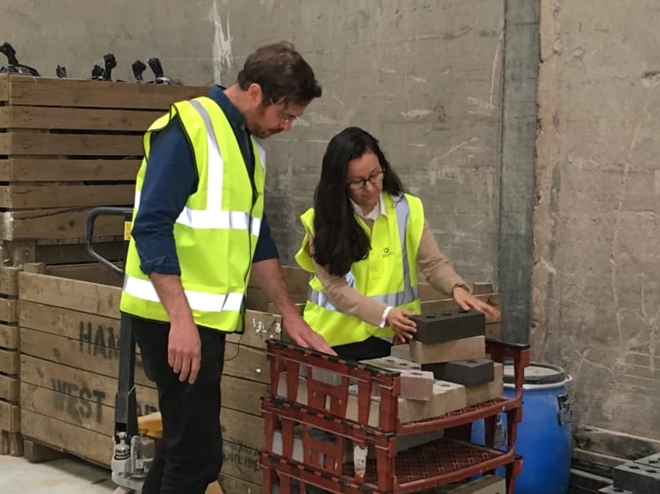 | Gabriela Medero và Sam Chapman, đồng sáng lập Công ty Kenoteq, cho hay họ đã tạo ra loại gạch thay thế cho loại gạch truyền thống tạo ra từ đất sét nung. Ảnh: Kenoteq/ CNN. |