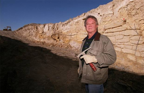 | Kiến trúc sư John Lindsey khai quật bức tường đá ở Rockwall. |