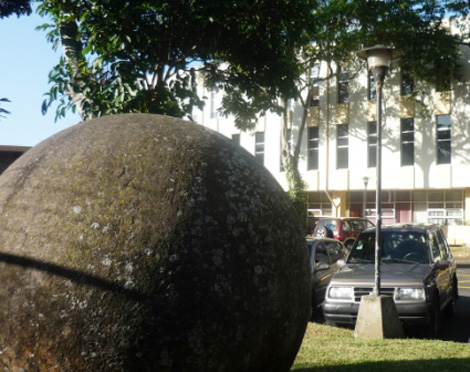 | Quả cầu đá nằm trong khuôn viên Đại học Costa Rica như là biểu tượng của truyền thống và sự thông thái của nguời cổ xưa. |