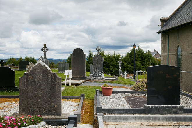 Đó là một ngày tuyệt vời để dạo quanh nghĩa địa: một chốn ẩm thấp, tối tăm và cấm đoán. Một màn sương mỏng giăng ngay cổng vào Nhà thờ Công giáo La Mã Thánh Tâm, sương ẩm rỉ ra như nước mắt người than khóc. Trong ngôi nhà thờ Bắc Ireland này, các thửa đất an táng nằm theo từng dãy dài cho người quá cố.