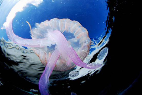 | Một con sứa ở ngoài khơi Tây Ban Nha, sinh vật biển vào thời gian này đang xuất hiện tràn lan. |