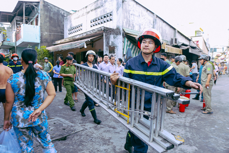 Chị Loan, nhà đối diện với nhà anh Mười thuật lại diễn biến của vụ cháy với vẻ mặt thảng thốt. Hơn 5h sáng chị nghe tiếng hô cháy của những người trong hẻm, nhìn sang thấy căn nhà đối diện lửa bốc ra nghi ngút. Không kịp suy nghĩ chị cùng người dân xách nước, bình chữa cháy dập lửa.