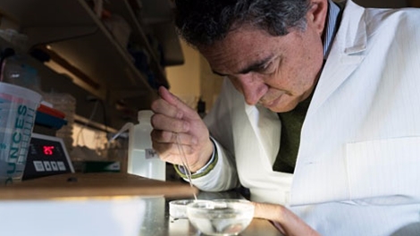 | Giáo sư Daniel Martinez đang nghiên cứu thủy tức trong phòng thí nghiệm. |