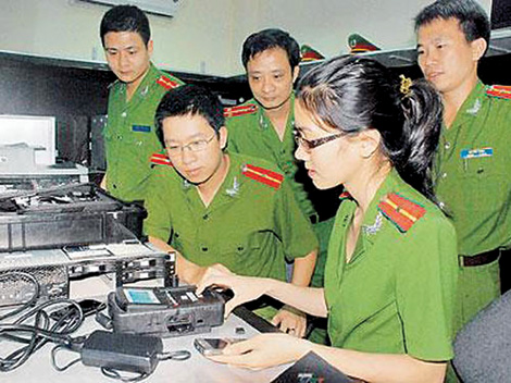 Cảnh sát công nghệ cao Hà Nội sử dụng các thiết bị phục hồi chứng cứ dữ liệu điện tử.