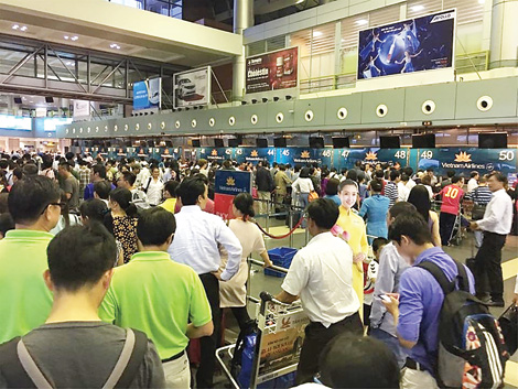 Sân bay Nội Bài đã phải làm thủ tục check-in bằng tay cho hành khách khi sự cố tin tặc tấn công hệ thống xảy ra vào chiều 29-7-2016.