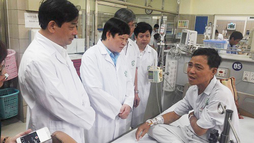 | Sáng 30-5, Thứ trưởng Bộ Y tế Nguyễn Viết Tiến đã đến thăm bệnh nhân chạy thận được chuyển từ Hòa Bình về BV Bạch Mai |