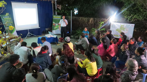 | Truyền thông cho người dân tổ dân phố Sơn Hải, phường Vĩnh Trường, TP Nha Trang trước khi thả muỗi mang vi khuẩn Wolbachia vào khu dân cư trong tháng 3-2017. Ảnh: Thảo Ly. |
