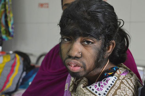 Bé gái Bithi Akhtar 12 tuổi ở Bangladesh đã mắc bệnh hiếm, khiến từ đầu tới chân cô bé phủ một lớp lông đen, Daily Mail mới đây đưa tin.