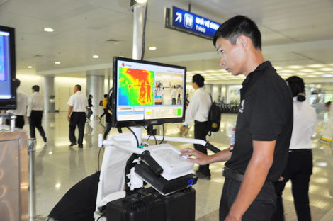 Hệ thống đo thân nhiệt từ xa tại Trung tâm Kiểm dịch Y tế quốc tế Sân bay Tân Sơn Nhất với khách nhập cảnh từ vùng dịch. |