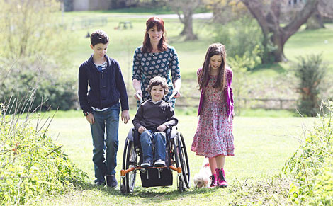 Chị Renata và các con (Dominic Blower ngồi xe lăn). |