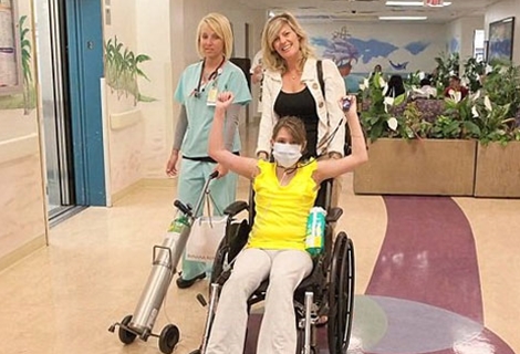| Claire Wineland sau khi được đưa khỏi trạng thái hôn mê. |