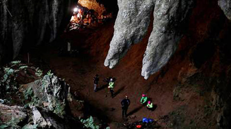 | Lực lượng cứu hộ bên trong hang Tham Luang. |