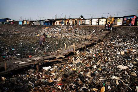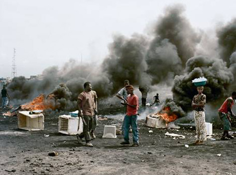 Tại vùng ngoại ô Agbogbloshie của thủ đô Accra (Ghana), những người trẻ tuổi phải lục lọi trong bãi rác giữa làn khói mịt mù từ những đám nhựa cháy chỉ để thu nhặt những mảnh vụn kim loại. Mặc cho những nguy hại cho sức khỏe, số tiền kiếm được khiến họ khó lòng cưỡng lại.