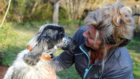 | Bà Vandermeer và con chó Boz đeo vòng cổ thông minh. |