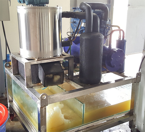 Máy sản xuất đá tuyết được lắp đặt có quy trình vận hành đơn giản, tự động hóa trong việc điều chỉnh thời gian, nhiệt độ bảo quản phù hợp với quy trình bảo quản hải sản đã được một số đơn vị nghiên cứu và phổ biến trong ngành thủy sản.