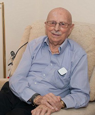 | Cụ Paul Gohla với chiếc vòng Buddi đeo nơi cổ tay. |
