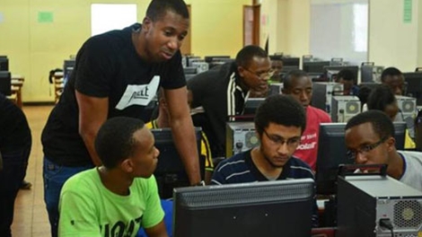 Bright Mawudor (người đứng) dạy các nhà lập trình trẻ tuổi về an ninh mạng. |