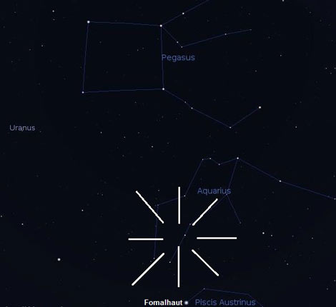 | Vị trí chòm sao Aquarius – trung tâm của mưa sao băng Delta Aquarids. |