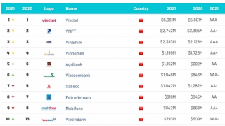 Thương hiệu Viettel được định giá 6,061 tỷ USD, tăng 260 triệu USD so với năm 2020