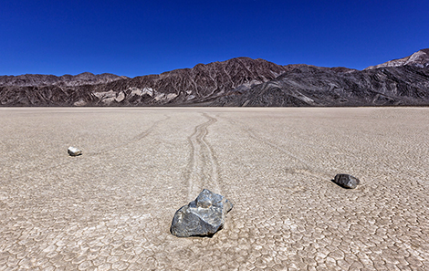 Những hòn đá tự dịch chuyển cũng là một điều bí ẩn ở thung lũng Dead Valley. Không có áp lực của gió, của mưa hay dòng nước, những hòn đá vẫn tự dịch chuyển một quãng đường dài và để lại những vệt đường đi của chúng trên cát.