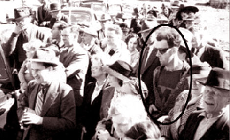| Bức ảnh nổi tiếng năm 1940 chụp người đàn ông mặc đồ hiện đại khác hẳn so với những người xung quanh... làm dấy lên những nghi ngờ về việc đã có công nghệ du hành xuyên thời gian |