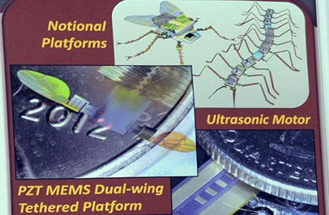 DARPA đã nghiên cứu thành công loại thiết bị bay mô phỏng theo loài ruồi, có thể thực hiện được nhiệm vụ trinh sát gián điệp và hiện đang trong giai đoạn thử nghiệm. Thiết bị này có hình dạng một đôi cánh robot chỉ dài 3mm, có thể bay lên được. Những chiếc cánh của côn trùng máy này được chế tạo từ chất liệu PZT, khi bị áp lực nó sẽ sinh ra nguồn điện tạo ra lực kéo. Sau khi có dòng điện chạy qua, chiếc cánh sẽ bị uốn cong và vỗ cánh bay lên.